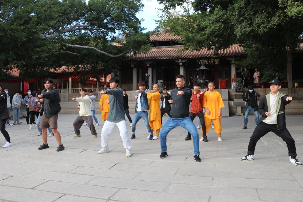 同学们先后参观闽台缘博物馆、到访南少林寺、参访泉州非物质文化遗产馆。在闽台缘博物馆,同学们认真聆听祖国大陆与宝岛台湾的历史关系讲解,了解闽台情缘和“两岸一家亲”的历史渊源。在南少林寺,同学们现场观看了震撼人心的武术表演,并在武僧的指导下现场学习武术动作,亲身体验泉州武术文化。在泉州非物质文化遗产馆,同学们近距离观看非遗成果展示、了解非遗技艺和制作过程,被精湛的技艺、丰富的陈设深深吸引,被泉州作为海上丝绸之路起点的多元文化内涵深深折服。