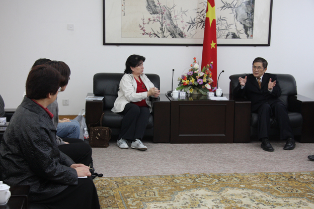 率团参加在华侨大学华文学院举办的2008年海外华裔青少年中华文化知识竞赛优胜者冬令营的各国领队,今日访问华侨大学泉州校区,华侨大学校长丘进在李克砌办公楼四楼接待室会见客人。