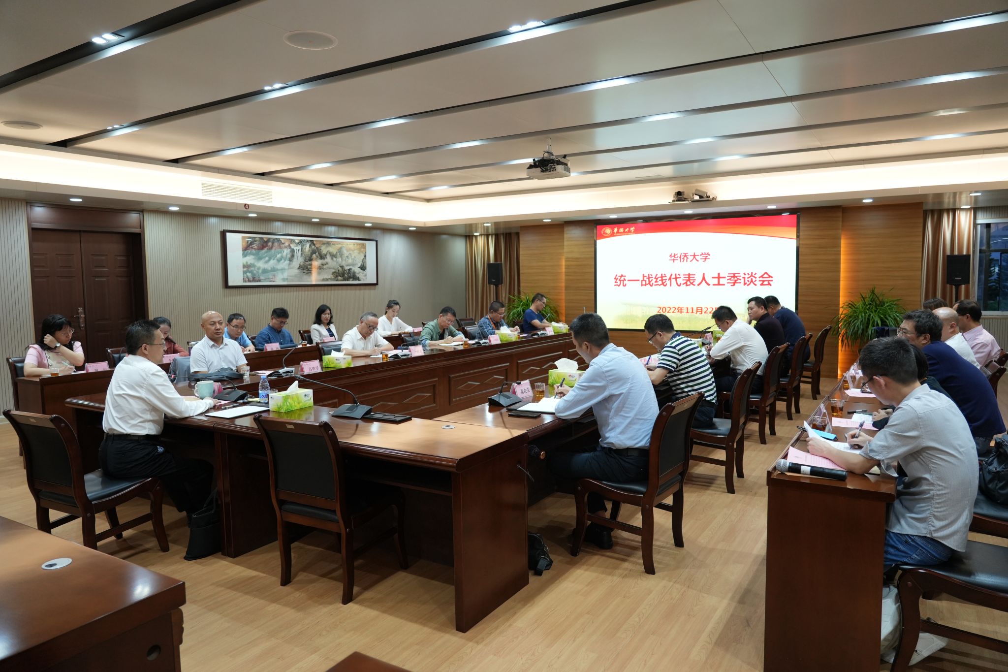 会上,各民主党派、统战团体负责人围绕中共二十大精神的组织学习、主题调研及专题宣讲等活动情况展开交流,并就下一步工作安排进行探讨。大家一致表示,将把学习贯彻中共二十大精神与坚守政治方向结合起来,坚决拥护中共二十大作出的各项决策部署,不断夯实共同奋斗的思想政治基础;与履职尽责结合起来,将学习成果转化为服务学校改革发展和经济社会建设的实际行动,在以中国式现代化全面推进中华民族伟大复兴的新征程上作出侨校贡献、展现侨校风采。