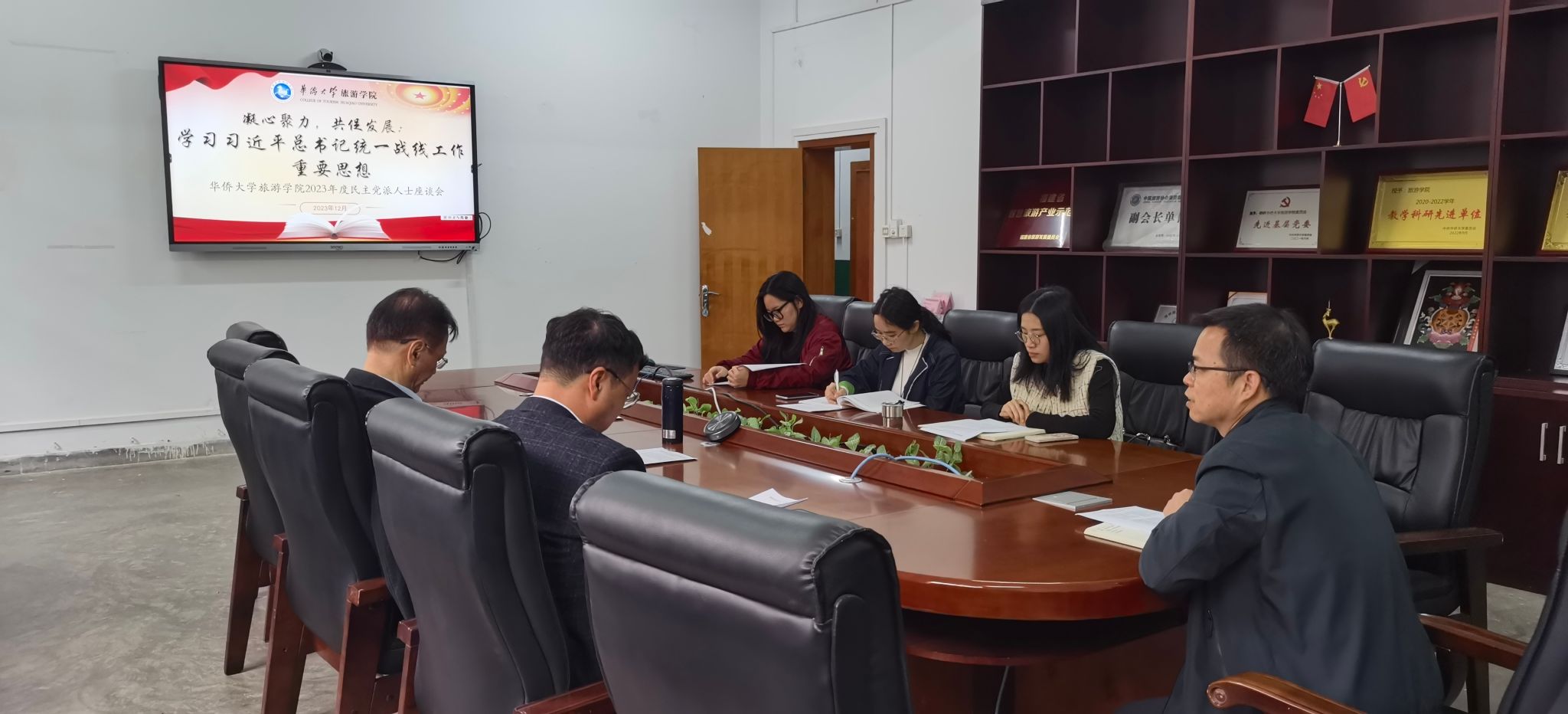 12月14日上午,旅游学院党委在207会议室召开2023年“凝心聚力,共促发展”民主党派人士座谈会,学院党委书记许国玺、副院长张慧、党委统战委员黄远水等出席会议,学院民主党派等青年教师参加座谈。