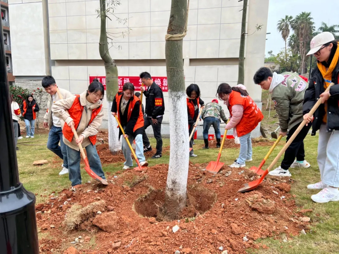 为贯彻落实习近平生态文明思想,强化对大学生的劳动教育水平,加强师生民族团结进步教育,进一步铸牢中华民族共同体意识,后勤绿化中心开展“铸牢中华民族共同体意识”主题月活动,陆续在紫藤长廊、大众图书馆、北区学生宿舍等场地,开展了11场植树系列活动,主要种植垂柳梅、佛肚树、羊蹄甲、风铃木等13个品种的大小乔灌木约300株。后勤与资产管理处、校团委、校工会、工学院、美术学院、华大派出所等12家单位、600多名境内外师生参加活动,为校园增添绿化面积约2000㎡,其中少数民族师生也参与其中。