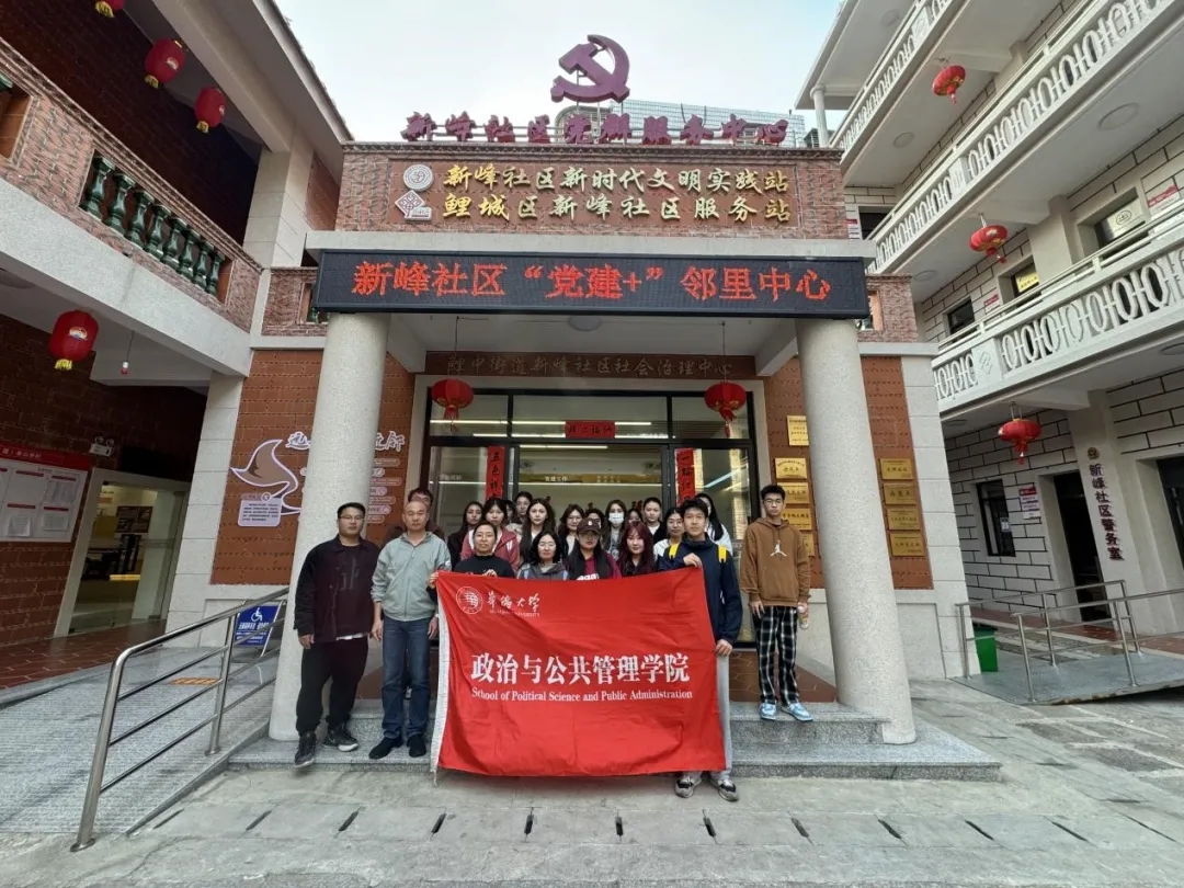 政管学院师生在新峰社区“党建+”邻里中心前合影