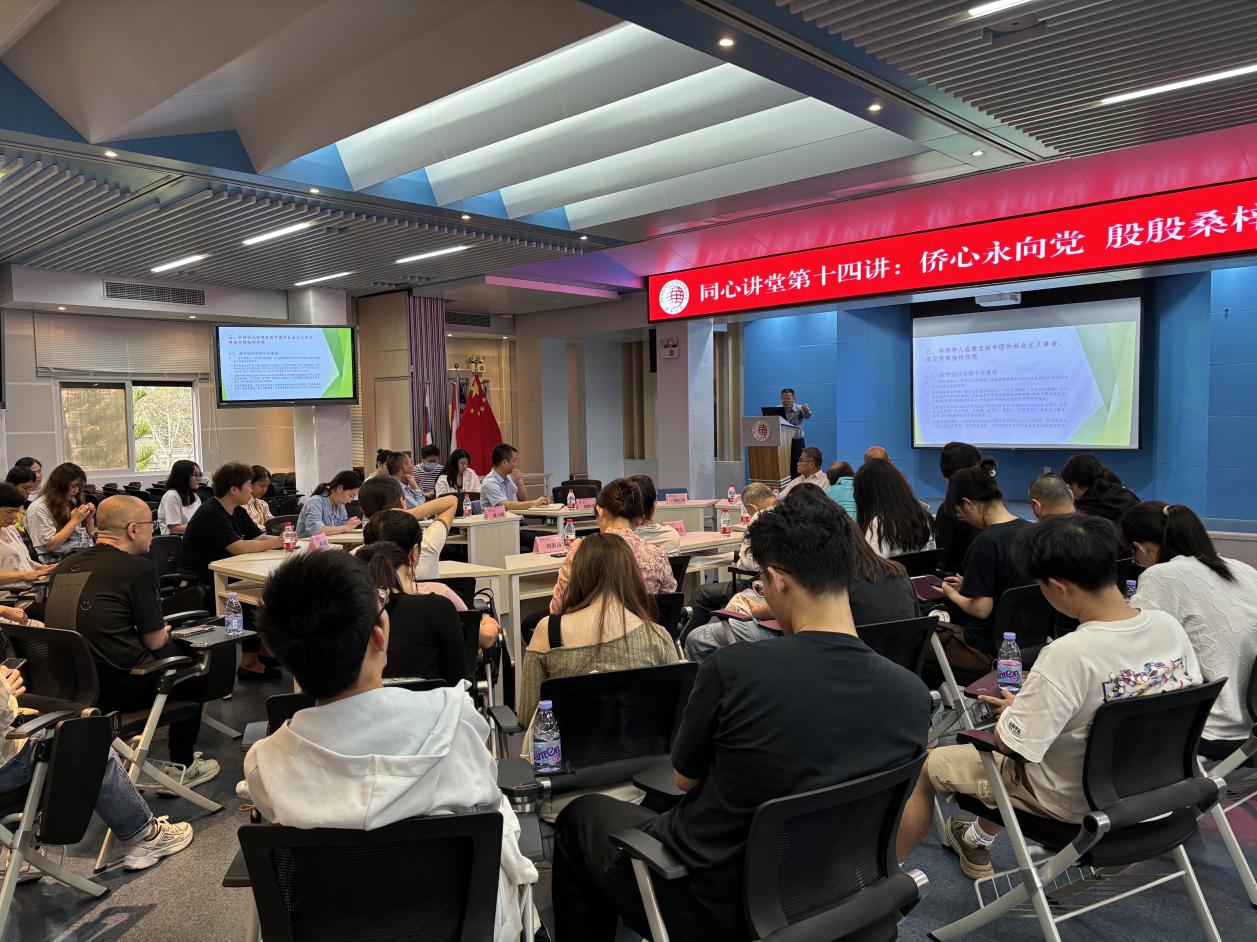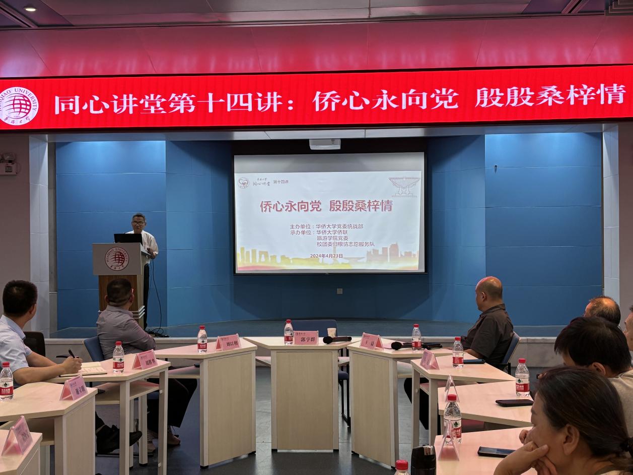 4月23日下午,由校党委统战部主办,华侨大学侨联、旅游学院党委以及校团委归根情志愿服务队承办的同心讲堂第十四讲在杨思椿科学楼五层会议厅开讲。