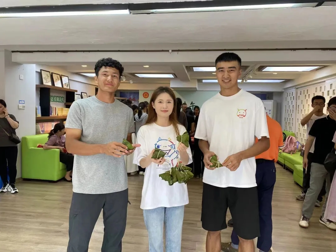 一片绿叶、一缕清香、一根细绳传承着千年的味道,大家用灵巧的双手把对生活的热爱包进百味的粽子里。捋粽叶、做漏斗、填糯米、放馅料、裹扎绳,大家互相分享着包粽子的经验,感受传统手艺的魅力。“包粽子、挂艾叶等传统习俗让我仿佛穿越回了古时。大家围坐一起包粽子,不仅增进了彼此的感情,也让我更加珍惜和热爱我们的传统文化,期待未来能够继续传承和发扬这些宝贵的文化遗产”,维吾尔族学生热孜万古丽·阿卜杜热合曼笑着表示。