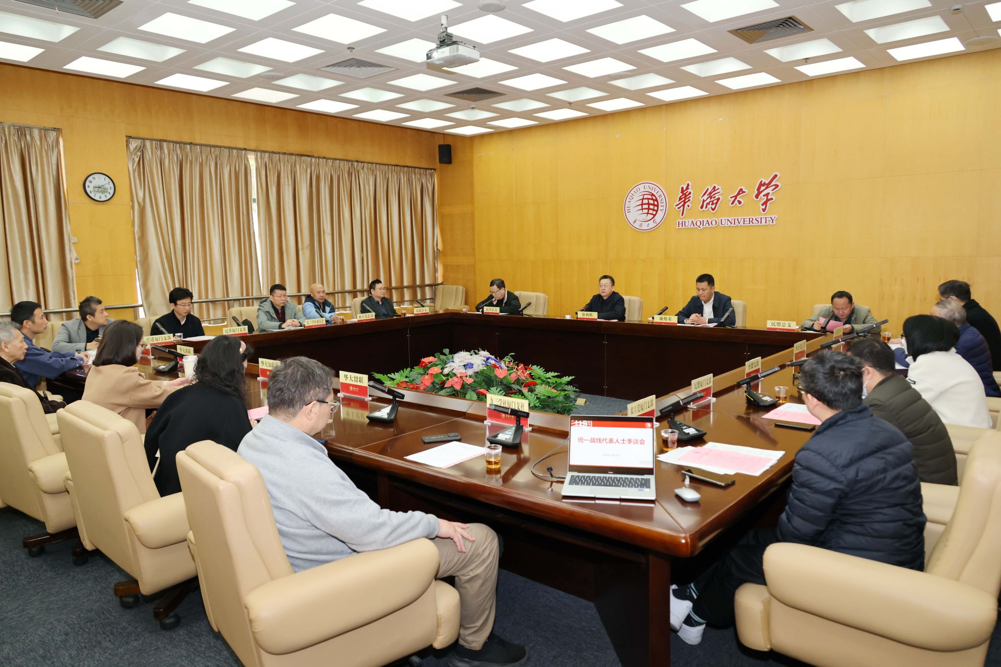 12月25日上午,校党委书记徐西鹏在王源兴国际会议中心202会议室主持召开2024年第四季度统一战线代表人士季谈会,围绕学习习近平总书记在全国教育大会和福建考察时的重要讲话精神进行座谈。各民主党派、统战团体相关负责人、校党委统战部负责人参加会议。