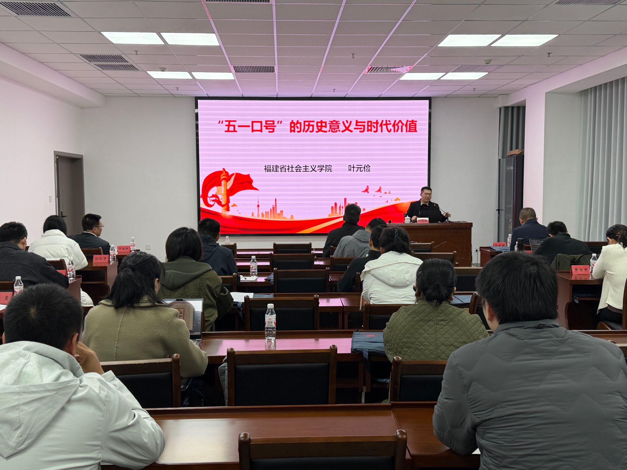 研修期间,谢俊荣为研修班学员作中共二十届四中全会精神宣讲报告,福建省社会主义学院副教授叶元俭以《凝心铸魂强根基、团结奋进新征程——“五一口号”的历史意义与时代价值》为题进行专题授课。学员们还先后走访宁化县革命纪念馆、玉扣纸展示馆、畲乡文化展馆、客家祖地、隆陂水库、谷文昌纪念园等地,从革命历史中汲取斗争精神,于传统技艺传承里领悟工匠精神,在民族融合中感受团结精神,从水利建设成果中体会实干精神,于谷文昌事迹中汲取公仆精神。