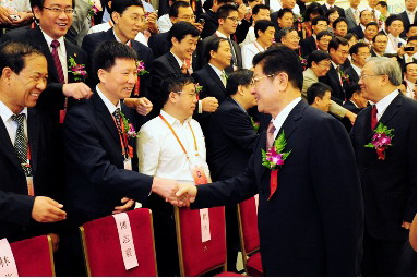 中共中央政治局委员、全国人大常委会副委员长王兆国与吕振利老师亲切握手