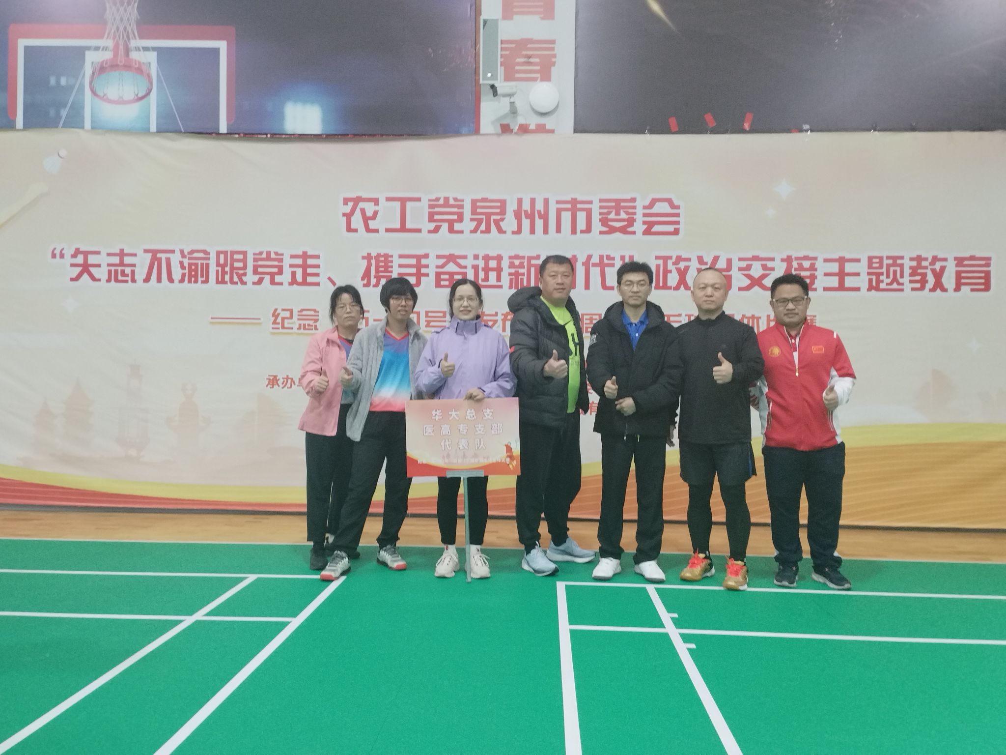 3月26日,由农工党泉州市委会主办的“纪念‘五一口号’发布75周年”羽毛球团体比赛在洛江举行。农工党华大总支联合医高专支部组队参赛。