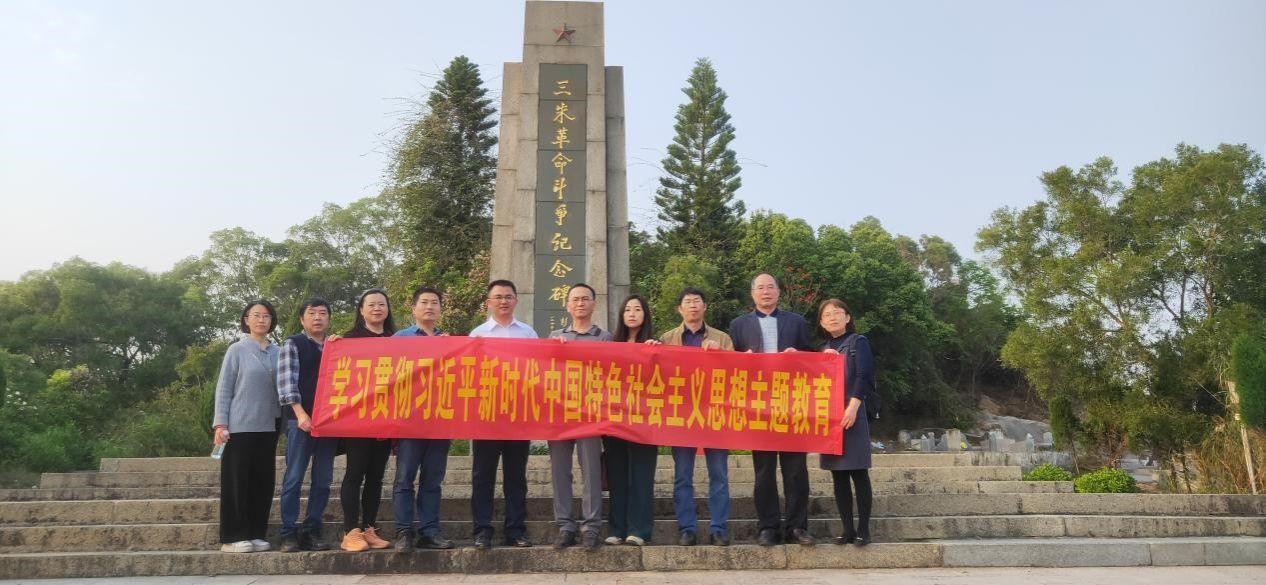 随后,调研组一行前往位于泉港区前黄镇北才穴山上的三朱爱国主义教育基地,开展传统革命教育,学习革命烈士解放惠安县城的英雄事迹。在三朱革命斗争纪念碑前,一行人员向在三朱革命斗争中牺牲的同志们集体深鞠三次躬,默哀一分钟,深切表达对革命烈士的缅怀之情。之后参观了泉州地区红旗不倒代表人物朱汉鹰故居,深切体会朱汉膺同志清廉的工作作风和崇高的革命精神。