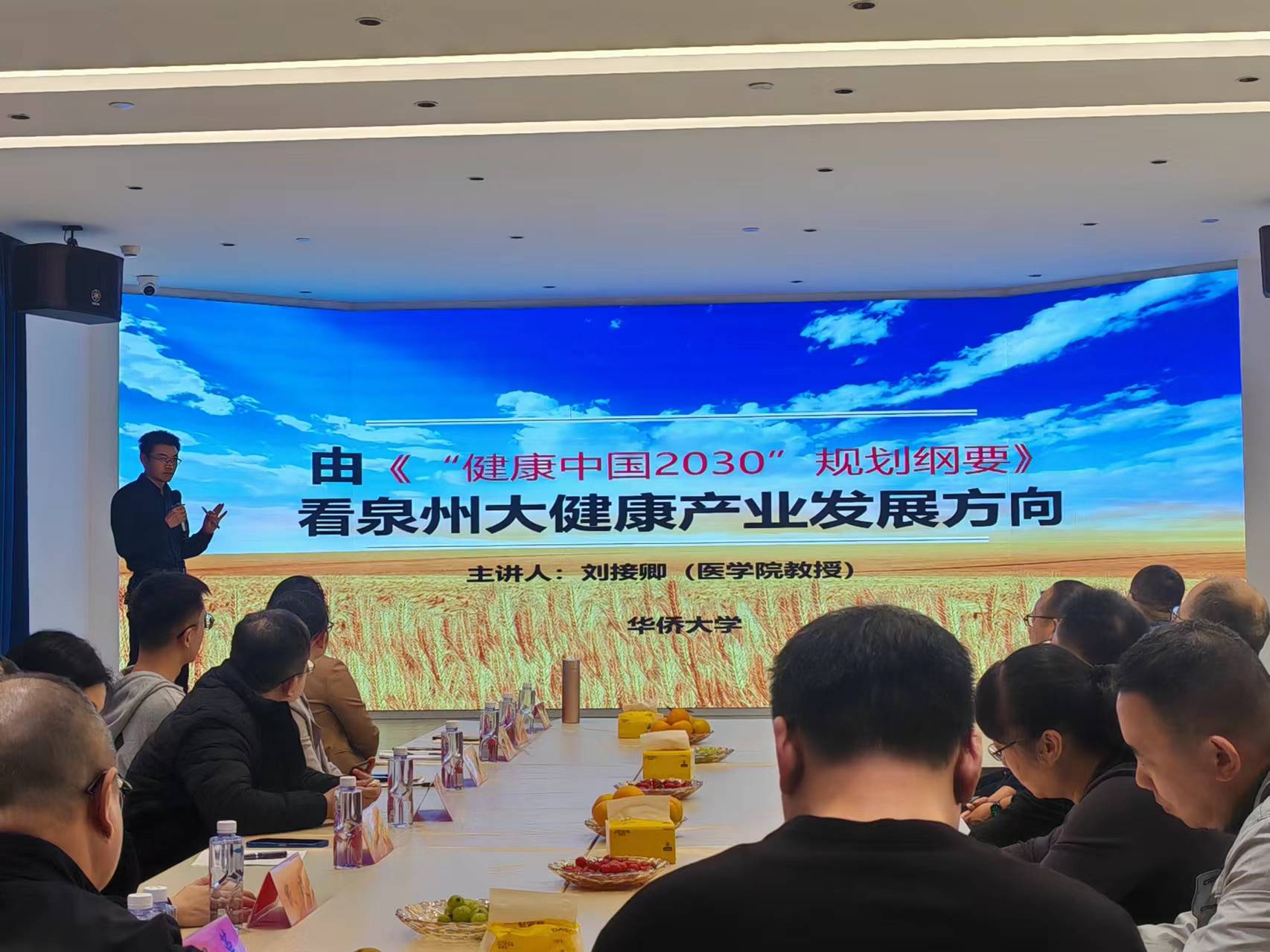 刘接卿教授作《由<“健康中国2030”规划纲要>看泉州大健康产业发展方向》主题分享现场