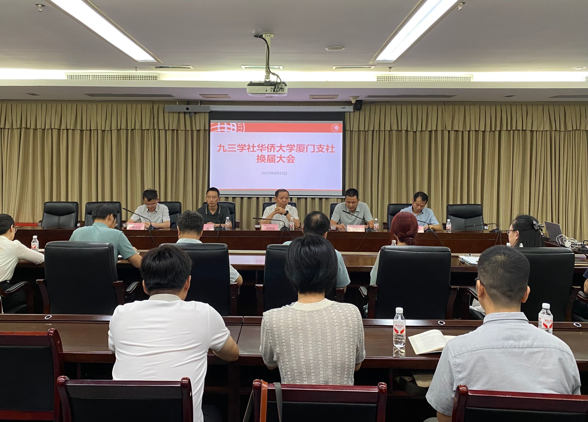 9月23日下午,九三学社华大厦门支社在厦门校区行政研发大楼403会议室召开换届大会。土木学院肖朝昀当选主委,土木学院涂兵雄、信息学院王孝艳当选副主委。